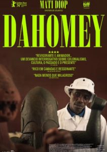 O documentário/filme Dahomey(2024) de Mati Diop evoca estratos temporais, emblemáticos e dominantes, rejeitando a visão apaziguada da entrega francesa ao Benim, expondo-a como parcial, procrastinada e impregnada de manobras potestativas contemporâneas. O filme evidencia que a devolução de 26 objetos artísticos e ancestrais do Benin não implica reconciliação alegórica ou temporal, deixando incólumes as validações artísticas e científicas do Norte global, retornando artefatos sem abdicar da narrativa sobre seu sentido profundo.
