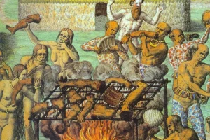 O poema de Rogério Rocha, intitulado Há Rios Onde Rimas São Mortalhas, apresenta uma complexa interação entre elementos líricos, simbólicos e surrealistas. O título sugere um contraste intrigante entre a beleza dos rios e a mortalidade das rimas, antecipando o tema da dualidade e da efemeridade ao longo do poema. O poema segue uma estrutura irregular em termos de estrofes e métrica, o que reflete a complexidade dos sentimentos e imagens evocados pelo poeta. A ausência de rima regular também é notável, sugerindo uma liberdade criativa. O poema é rico em imagens surrealistas e perturbadoras. Cisos brancos das bocas dos canibais, serpentes aladas e corpos flácidos criam uma atmosfera onírica e perturbadora. A natureza desempenha um papel importante, com referências a rios, mangues e elementos naturais que se misturam com a história e a herança cultural (“restos de monges”, “tesouros furtados de dentro das casas de meus ancestrais”). Essa fusão de elementos naturais e culturais cria uma paisagem única e misteriosa. Há uma profusão de símbolos e metáforas, como “rimas são mortalhas”, que sugerem que a expressão poética pode ser ao mesmo tempo uma forma de celebração e uma representação da mortalidade. O rio infecto pode simbolizar a decadência e a corrupção. O poema parece ser uma reflexão sobre a condição do poeta e a sua relação com a sociedade. A ironia está presente quando o poeta ri da morte e dança insolentemente na frente do touro, desafiando convenções e expectativas. O poema sugere uma luta entre a autenticidade do poeta e as pressões sociais. A busca pela verdade e a expressão genuína são retratadas como desafiadoras, mas fundamentais. Apesar da ausência de rima regular, o poema tem um ritmo próprio, com aliterações e assonâncias que contribuem para a sua musicalidade. Isso ajuda a criar uma atmosfera única e envolvente. É um poema que desafia as convenções, explorando a dualidade da expressão poética, a relação entre natureza e cultura, e a busca pela autenticidade, convidando o leitor a uma reflexão profunda sobre a arte e a vida.